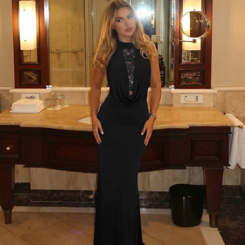 Trendy elements: Hollow-out design, halter neck